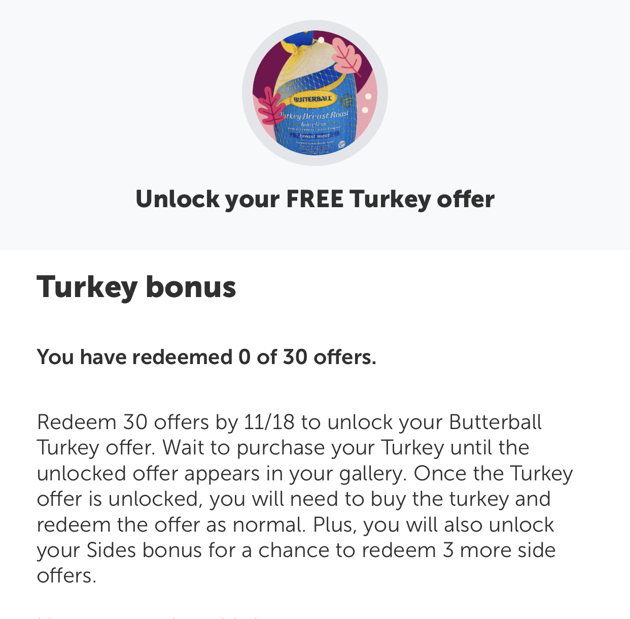 Download the ibotta app and get 100% cash back on turkey, gravy, mashed potatoes, and more thanksgiving staples.